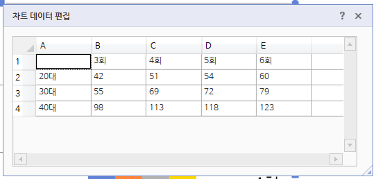 3. 차트 데이터 편집 대화상자는 데이타가 수정할 부분이 없다면 X로 닫습니다.