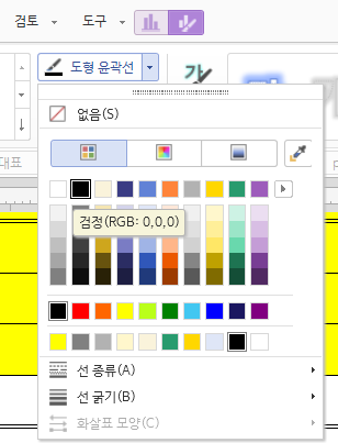 7.위 메뉴에서 도형 윤곽선을 검정으로 선택합니다.