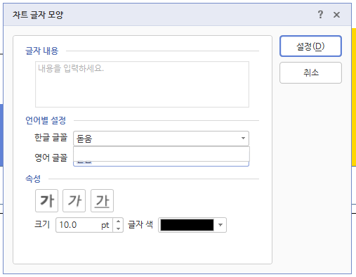 11. 값축에서 오른쪽 마우스 클릭하여 글자 모양 변경합니다.