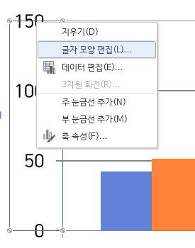 12. 항목 축에서 오른쪽 마우스 클릭하여 글자 모양 변경합니다.ㅣ