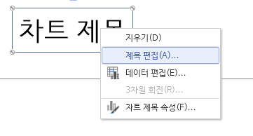 6. 제목에서 오른쪽 마우스 클릭 '제목 편집'을 클릭 하여 대화상자에서 글자 내용을 변경하고 글꼴(돋움)과 속성(크기 12)을 지정합니다. 한글과 영어 모두 바꿉니다.