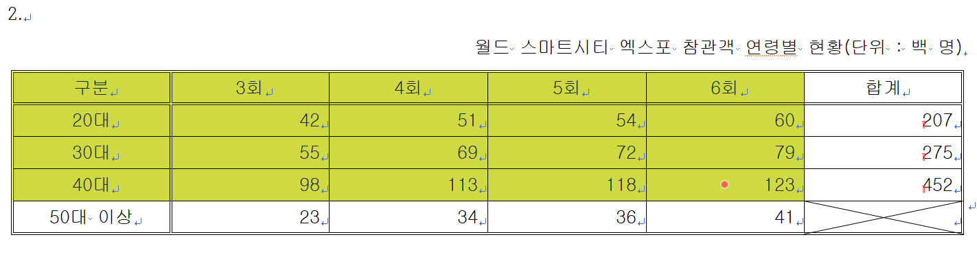 14. 축제목에서 오른쪽 마우스를 클릭하여 '제목편집'을 선택하여 글자내용을 바꾸고(단위 : 백명), 글꼴을 한글과 영어 모두 '돋음'으로 변경한 후 설정을 클릭한다.