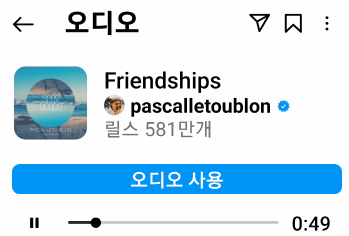 * 릴스를 보다가 마음에 드는 오디오가 들리면 저장을 해도 되고 하단 왼쪽에 오디오를 눌러서 그 오디오로 영상을 제작할 수 있다.