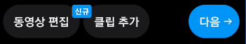 4. [다음]을 클릭하면 내가 찍은 영상이 나타나고 음악, 글자, 효과 등을 넣고 영상을 완성해준다.