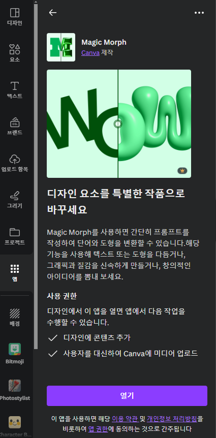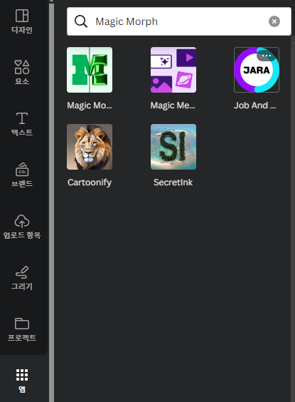 글씨를 선택하고 - 앱 클릭 - Magic Morph로 검색