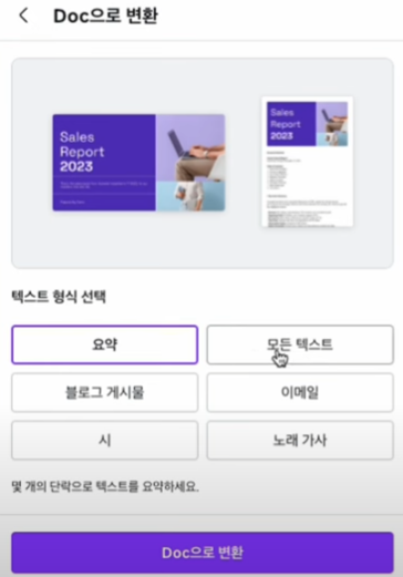 슬라이드를 선택하고 아래메뉴 클릭 Docs로 변환