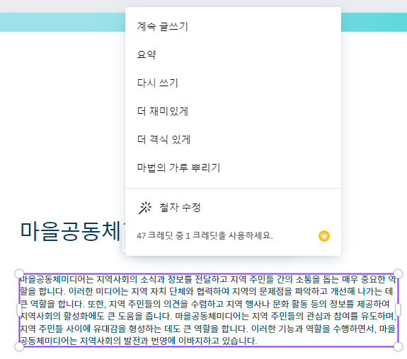 간단하게 프롬프트를 작성해서 텍스트를 생성하거나 편집할 수 있다.