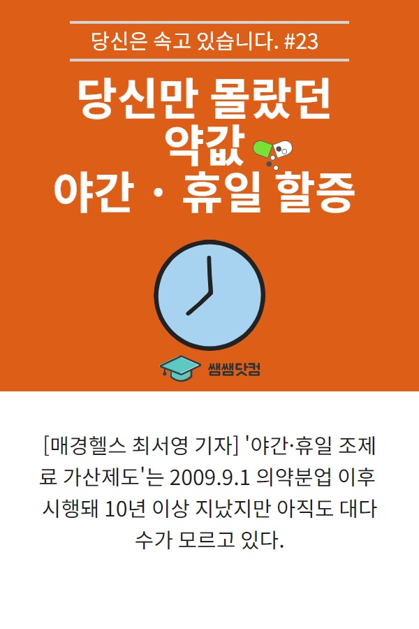 [BY 매경헬스] [매경헬스 최서영 기자] '야간·휴일 조제료 가산제도'는 2009.9.1 의약분업 이후 시행돼 1...