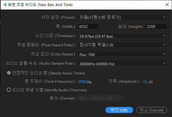 화면 조정 색상막대 및 톤 삽입