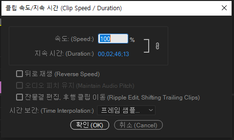 영상 속도 조절하기(Ctrl + R)