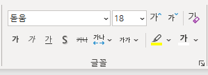 5. 표의 테두리를 선택하고, (셀만 선택하면 그 셀만 지정이 된다.) 글골을 돋움 18pt로 지정한다