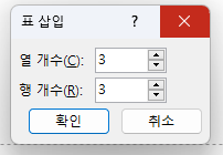 셀의 크기를 확인하고 개수를 입력한 후 [확인]을 클릭한다.