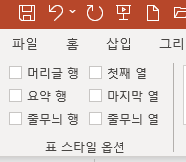 4. [테이블 디자인] 탭의 [표 스타일 옵션]에서 '머리글 행'과 '줄무늬 행'의 체트를 푼다.
