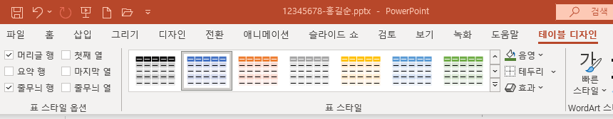 2021버젼 파워포인트 표