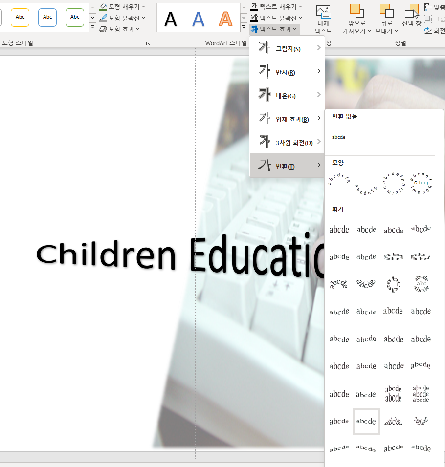 [삽입] - [워드아트] 첫번째 선