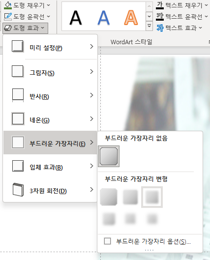 [도형 효과]의 부드러운 가장자리에서 pt를 선택한다.