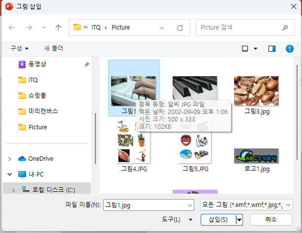 [Picture]에서 시험지의 그림을 선택한다.