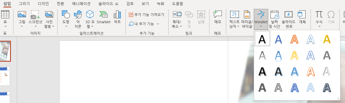 [삽입] - [워드아트] 첫번째 선