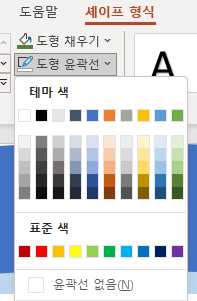 세개의 개체를 드래그하여선택한 후 [세이프 형식]에서 [도형 스타일]에서 [도형 윤관석]의 '윤곽선 없음'을 클릭하고 글꼴을 지정한다.(굴림, 24pt)