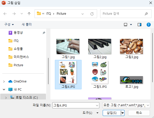 [내용]에서 두번째 줄의 첫번째 그림 모양의 아이콘을 선택한다.